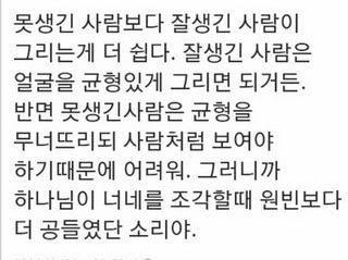 실제로 그려보면 못생기게 그리는게 쉬운데 말이죠... |