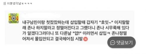 예전에 본 글 생각난다ㅋ 남친이 사랑할때 중요한순간(?)에 꼭 호잇~~!! 한다고ㅋ 헤어지고싶다던ㅋ
