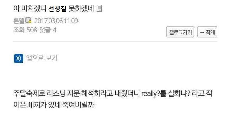 음... 뭐가문제지.? 영어선생이라서 한글 맞춤법 모르는게 문제인건가..?