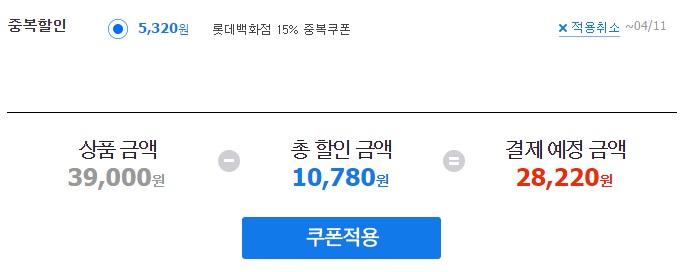 저 쿠폰을 받으시면 이렇게 짠!! 28,220원으로 거의 5,000원 정도 할인된 금액이 나옵니다!!!