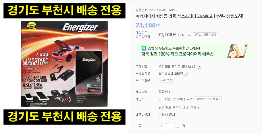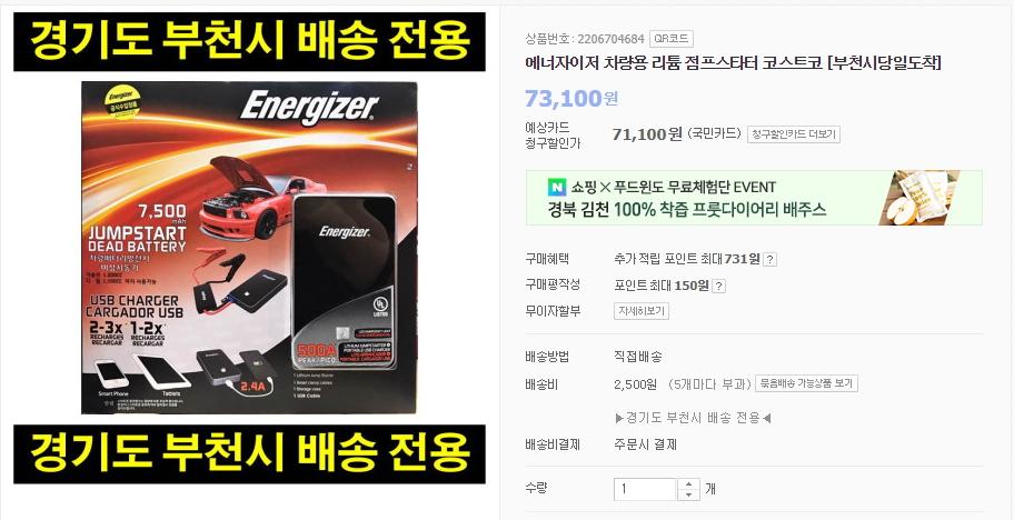 방전된 차량에 활력을 넣어줄 에너자이저 차량용 리튬 점프스타터를 판매하고 있습니다.