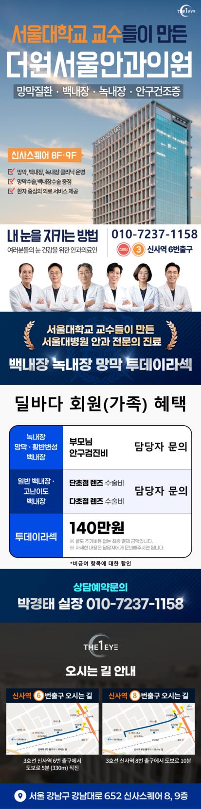 [더원서울안과]서울대학교 교수들이 만든 안과! 추가비용 없는 투데이라섹 등 안내