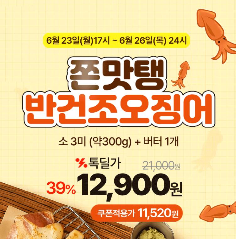 [톡딜] 쫀맛탱 반건조 오징어 소 3미 + 버터 (12900원/무료배송) > 상품홍보