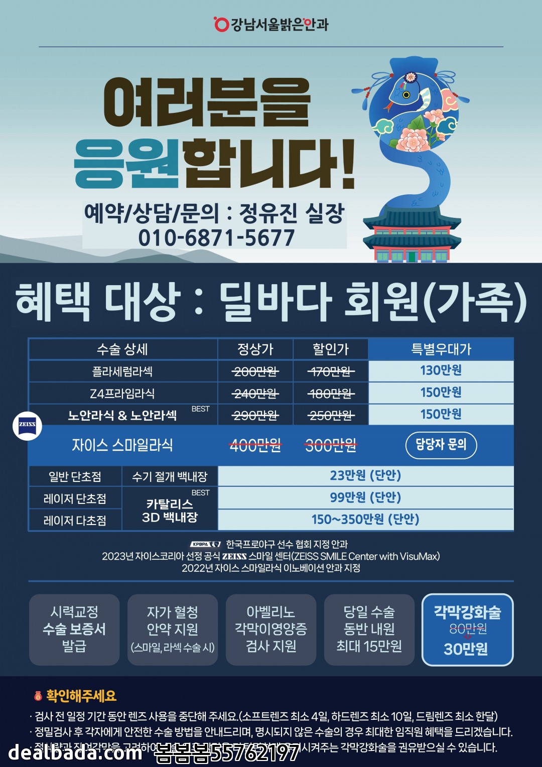 ★상담 예약 시 딜바다 회원(가족)이라고 말씀 해 주셔야 합니다.
