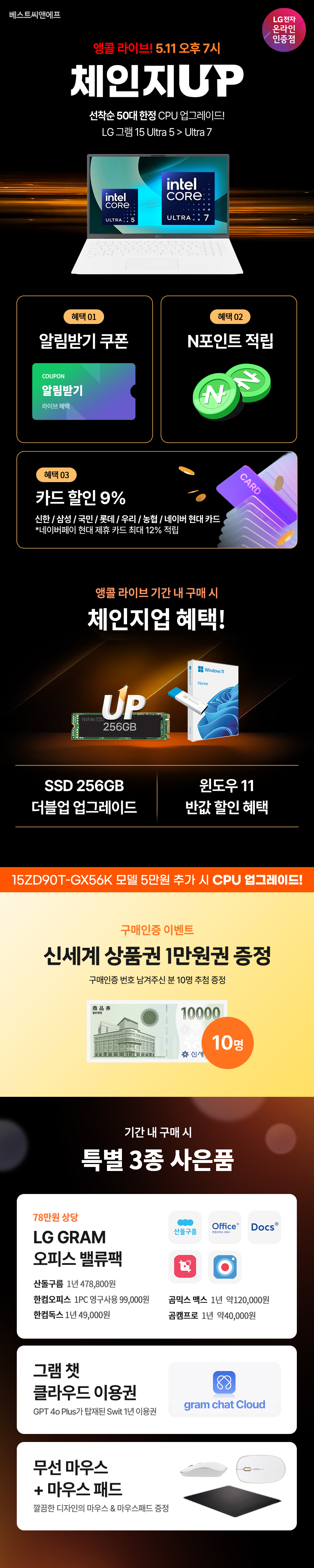 [네이버] 5/11(일) 오후 7시 LG 그램 15 애로우 레이크 특가 > 상품홍보