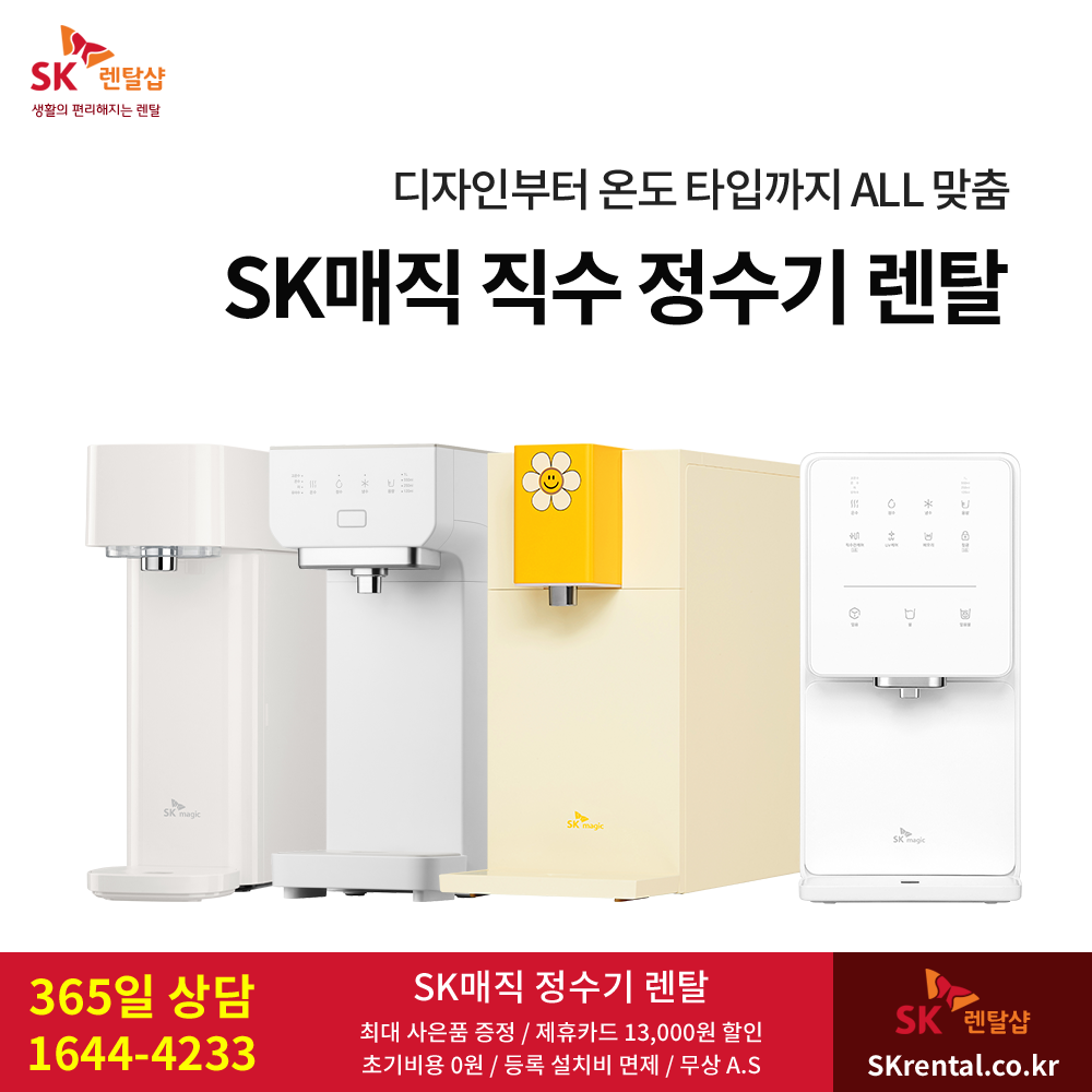 [SK렌탈] 정수기 12개월 반값할인, 비데, 청정기, 매트리스 (28,900원 냉온정 6년 기준)