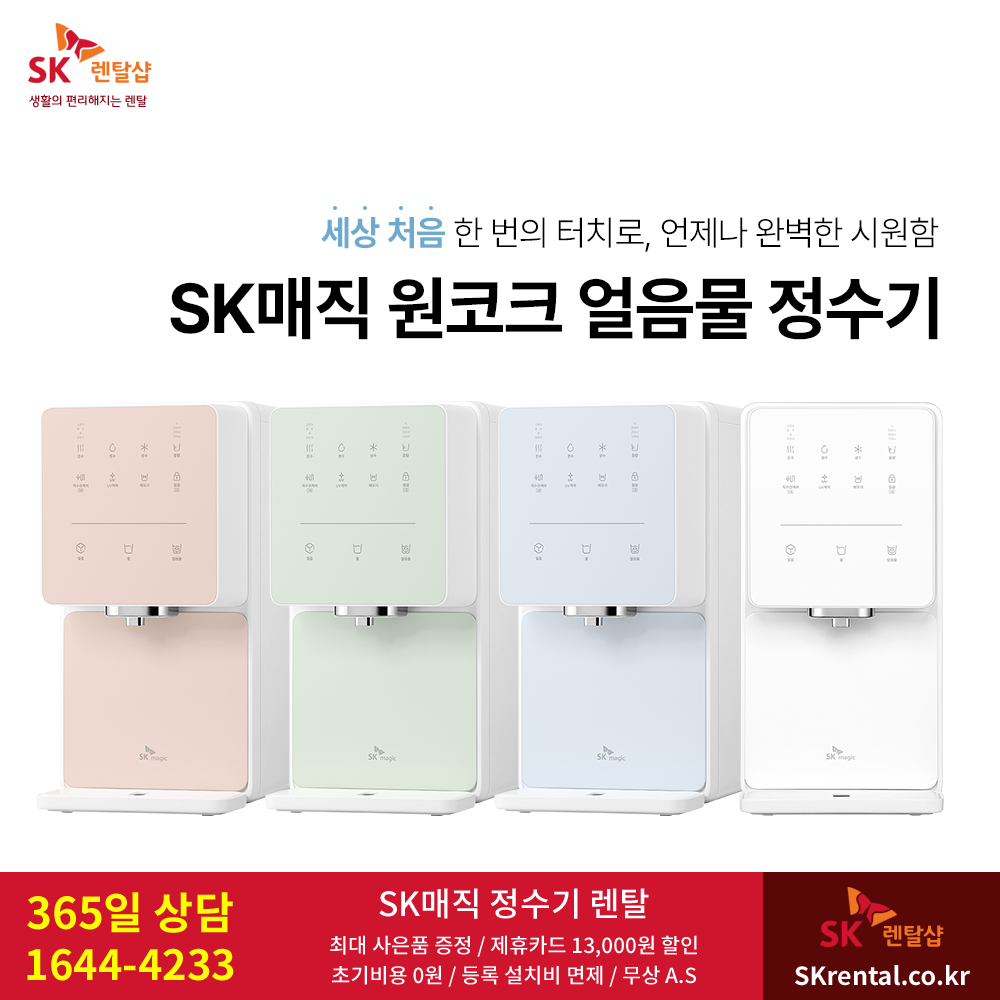 [SK렌탈] 정수기 6개월 반값할인, 비데, 청정기, 매트리스 (25,900원 냉온정 6년 기준)