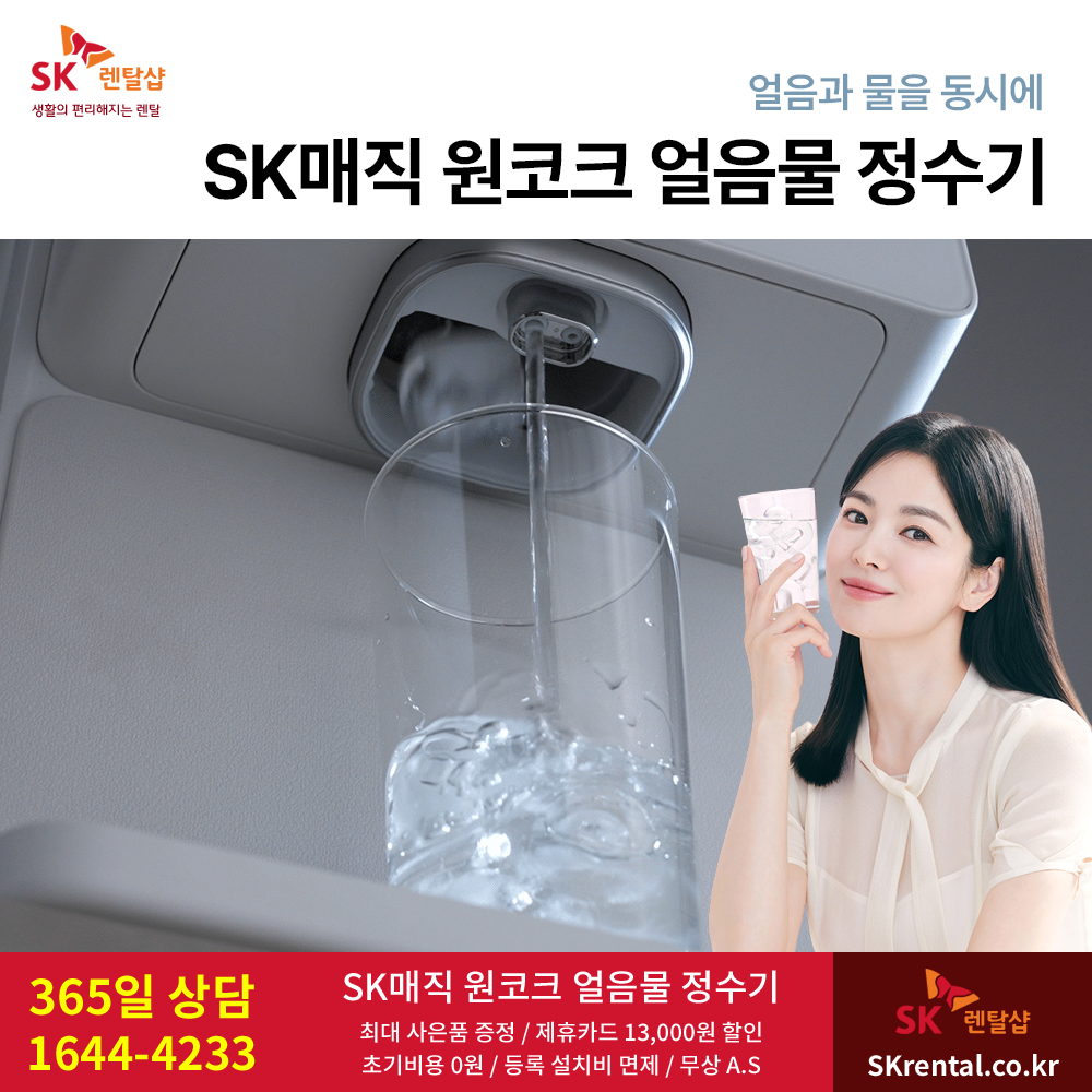 [SK렌탈샵 공식] 얼음정수기 / 비데 / 공기청정기 / 삼성가전 / 1+1 최대 사은품 / 할인 프로모션 / 365일 상담가능