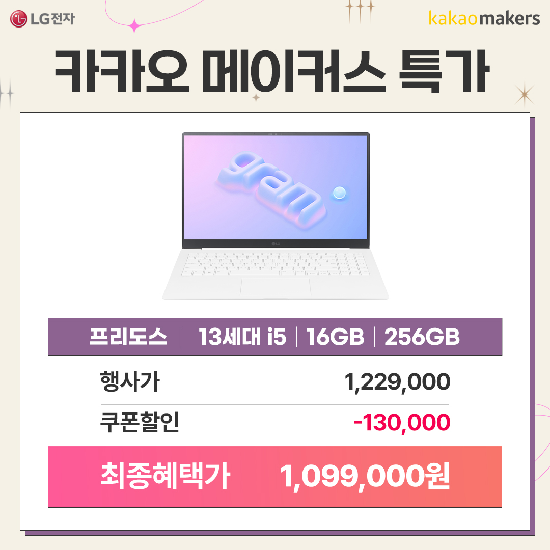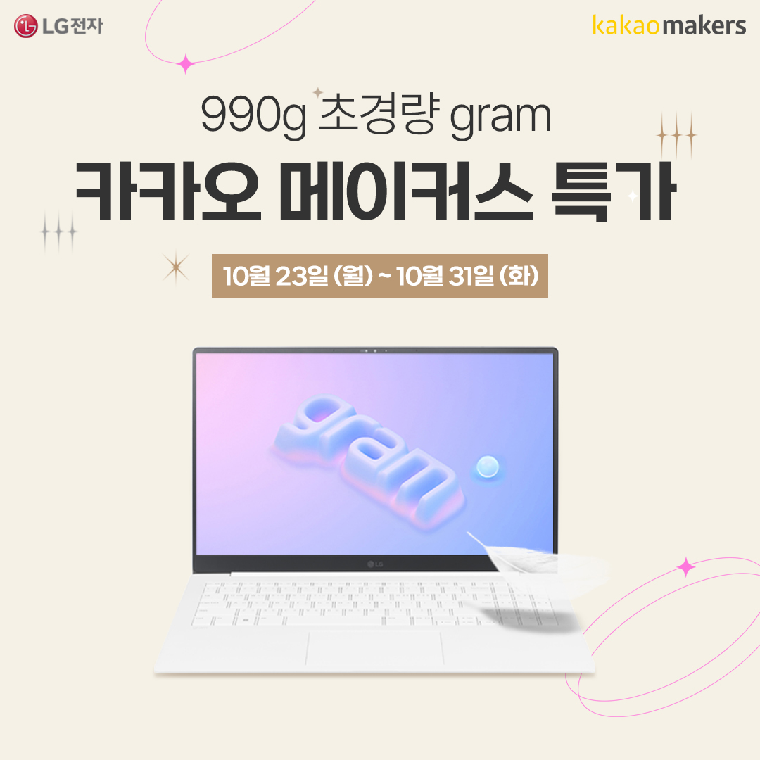[카카오메이커스] 10/23(월) ~ 10/31(화) LG그램 990그램 에디션 15ZD90RT-GX56K (1,099,000원/무료) > 상품홍보