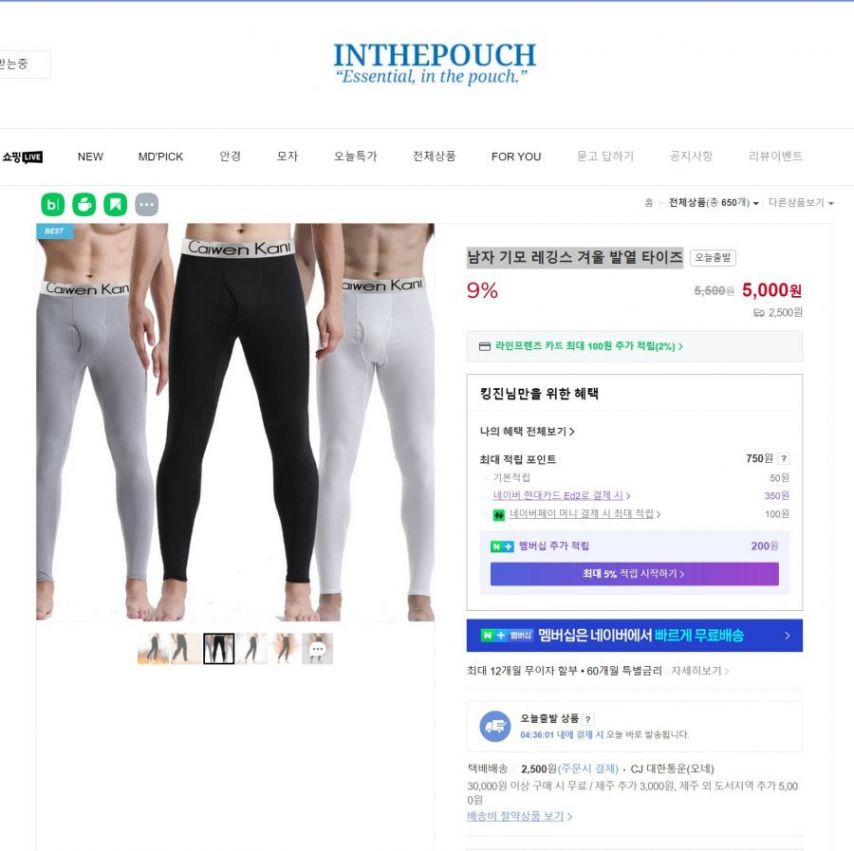 [네이버] 이 가격 실화냐…❄+ 남자 겨울 기모 발열 타이즈 ‘국내 최저가’ 떴다 (5,000원 / 2,500원)