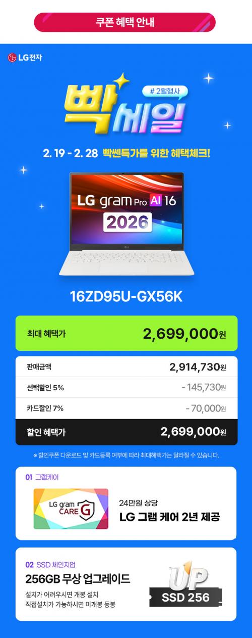 대표 행사 모델 : 2026 LG그램 Pro 16 AI (모델명: 16ZD95U-GX79K)