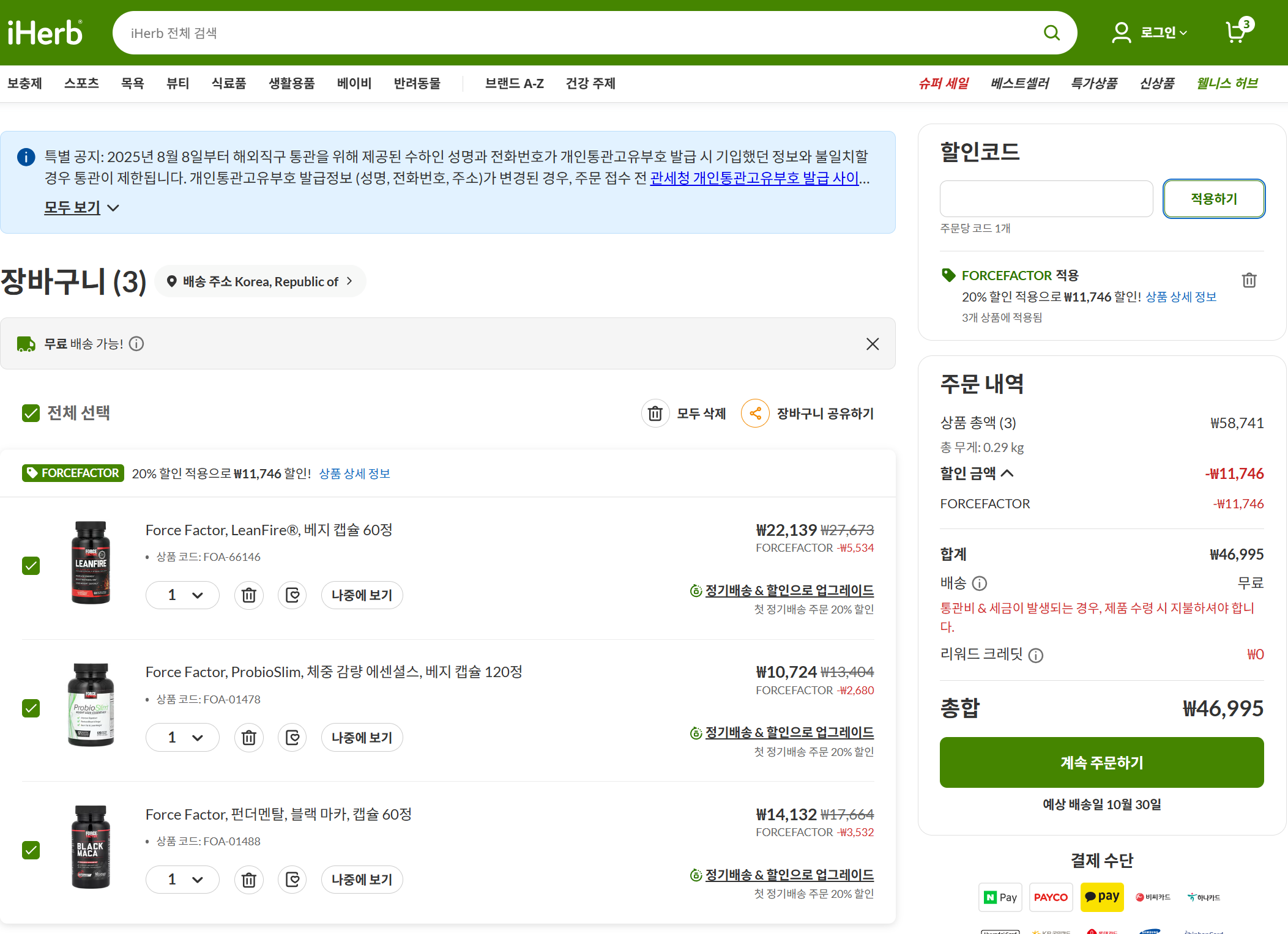 [아이허브] 나우푸드 25% 할인행사 진행中