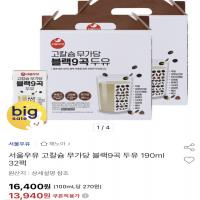 [옥션] 서울우유 고칼슘 무가당 블랙9곡 두유 190ml 32팩 (13,940원/무료)