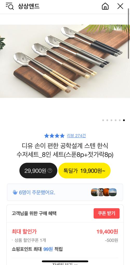 [톡딜] 디유 손이 편한 공학설계 스텐 한식 수저 8인세트 (19900원/무배) > 국내핫딜