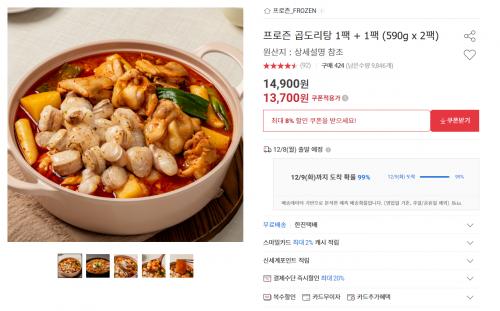 [옥션] 프로즌 곱도리탕 1팩 + 1팩 (13,700원 / 무료) > 국내핫딜