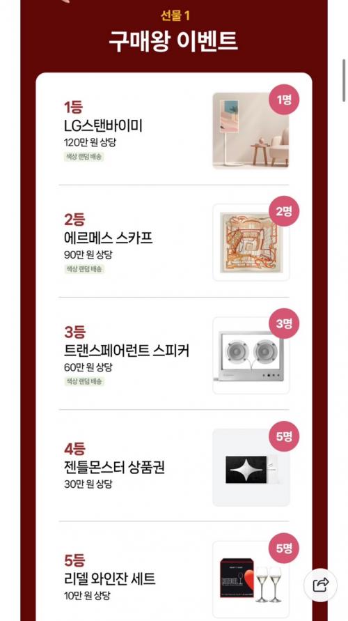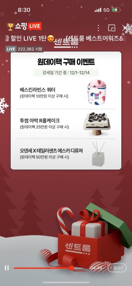 라이브 중이라 베라도 주고 구매왕은 에르메스, 스탠바이미 등 여러가지 이벤트가 있더라구요. 행운 룰렛도 있다고 하니 연말 선물하실 분들은 참고하세요