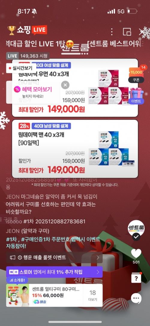 센트룸 원데이팩 40대를 위해서 원데이팩으로 나온거고 다른거 안챙겨먹어도 이것만 챙기면 된다고 하더라구요.