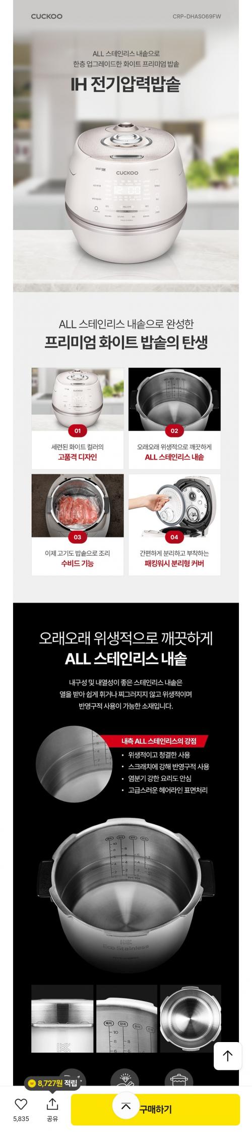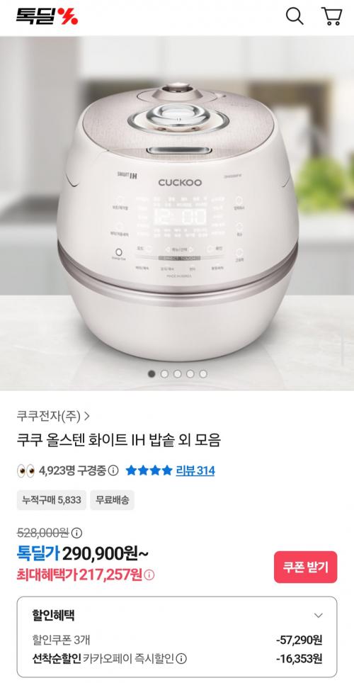 쿠쿠 올스텐 화이트 IH 밥솥 가성비 좋네요