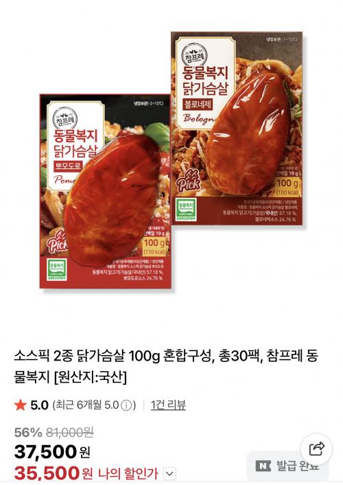 [네이버] 참프레 소스픽 2종 닭가슴살 100g 총30팩 (35,500원/무료)