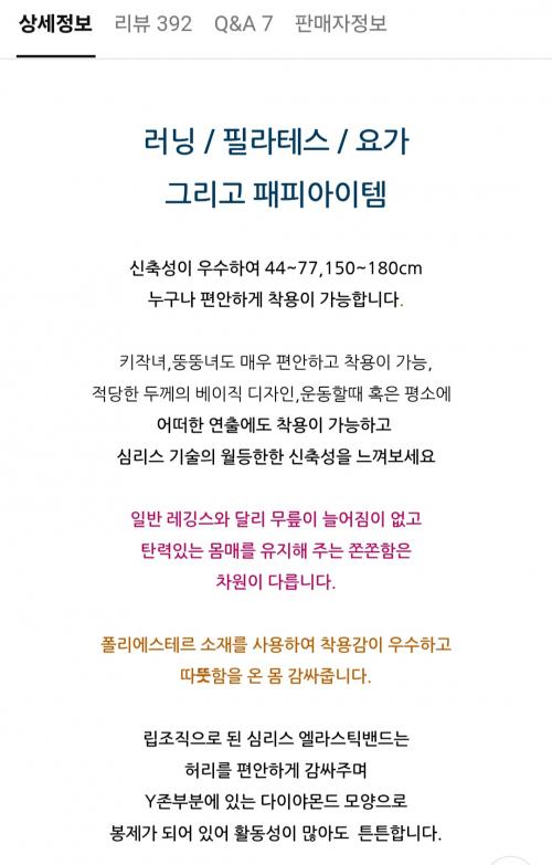 [네이버]빅사이즈 심리스 기모레깅스(7500원/무배) > 국내핫딜