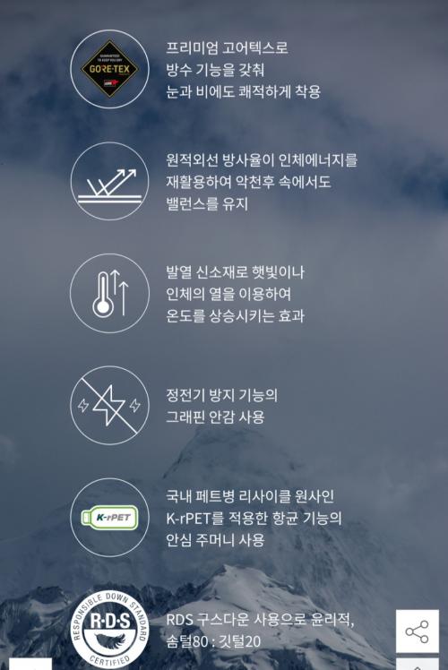 GTX 소재에 발열 기능 들어간 모델이라 겨울 야외활동이나 출퇴근용으로 좋아 보이네요~