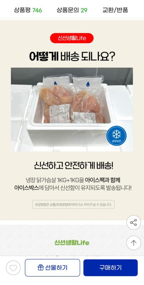 [지마켓] 당일생산 냉장 닭가슴살 1kg+1kg (12,240원/무배)