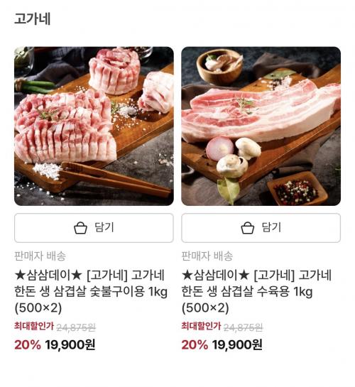 무항생제 삼겹살 1kg 19.9, 목살 18.9입니다.