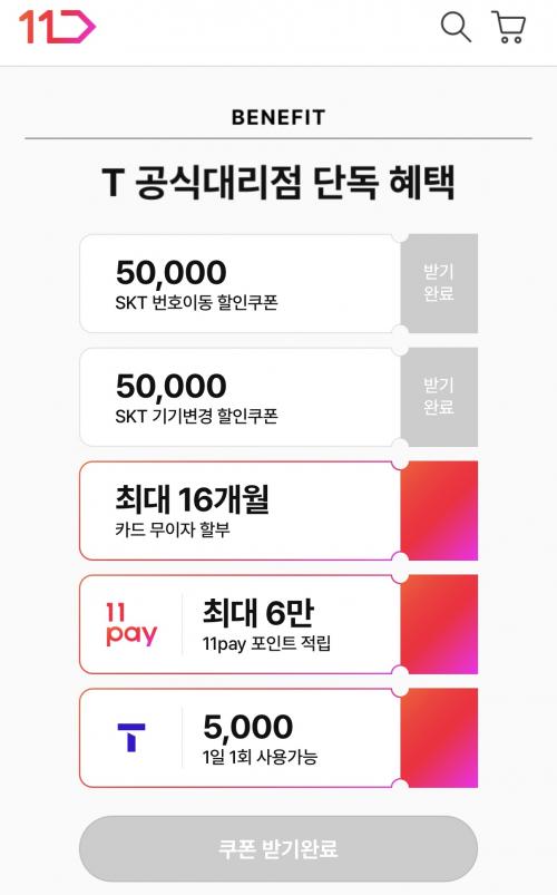 쿠폰+11pay 적립+티멤버십 등 할인 가능하고