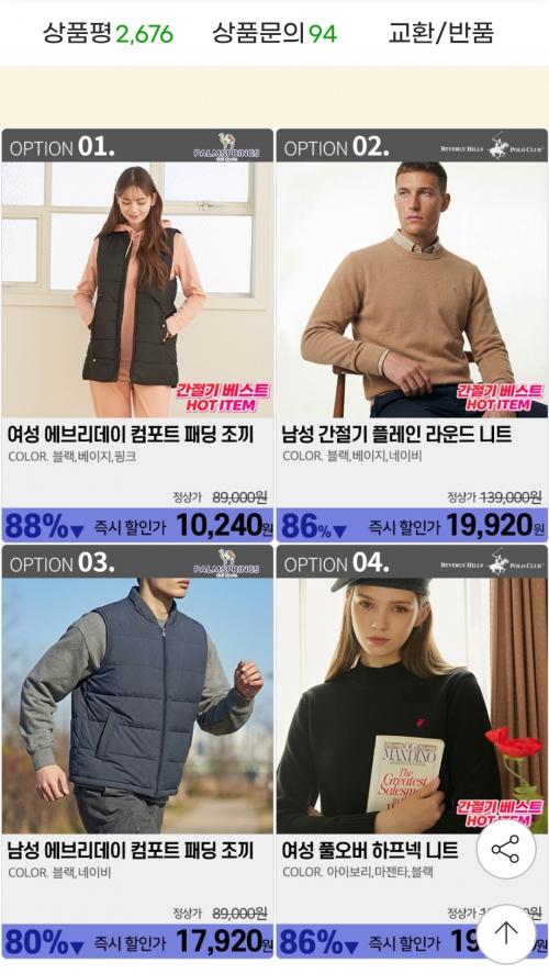 종류도 패딩조끼부터 니트,후드티등 다양해서