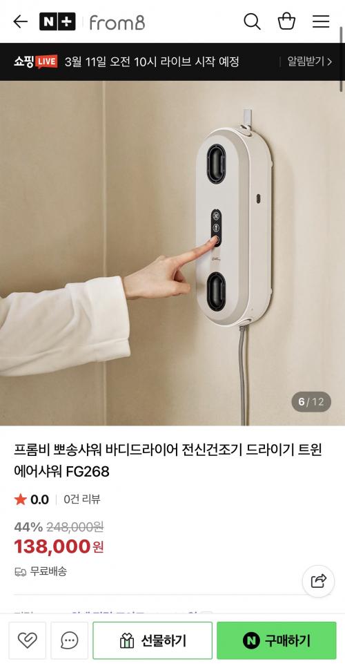 [네이버] 프롬비 전신건조기 에어샤워 (138,000원/무료)