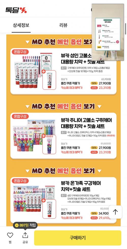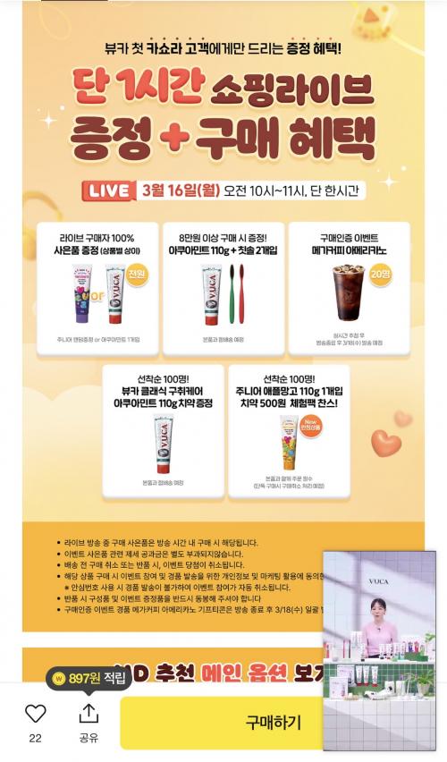 23,310원이고 라방 중 결제하면 치약 1개 사은품 증정이요