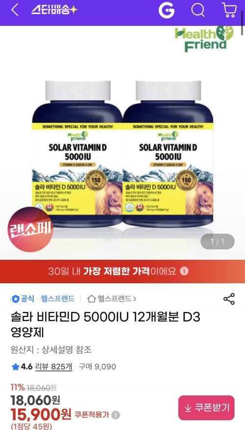 비타민D 5000IU 함량도 높고 12개월분 1년치 대용량 할인해서 가격 저렴해요