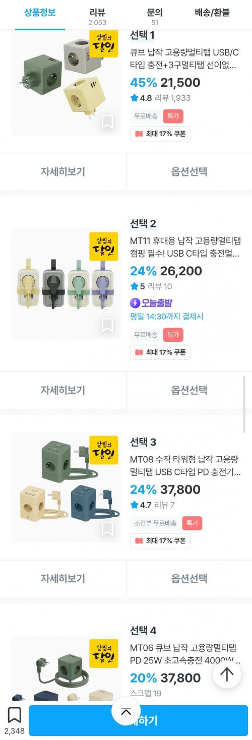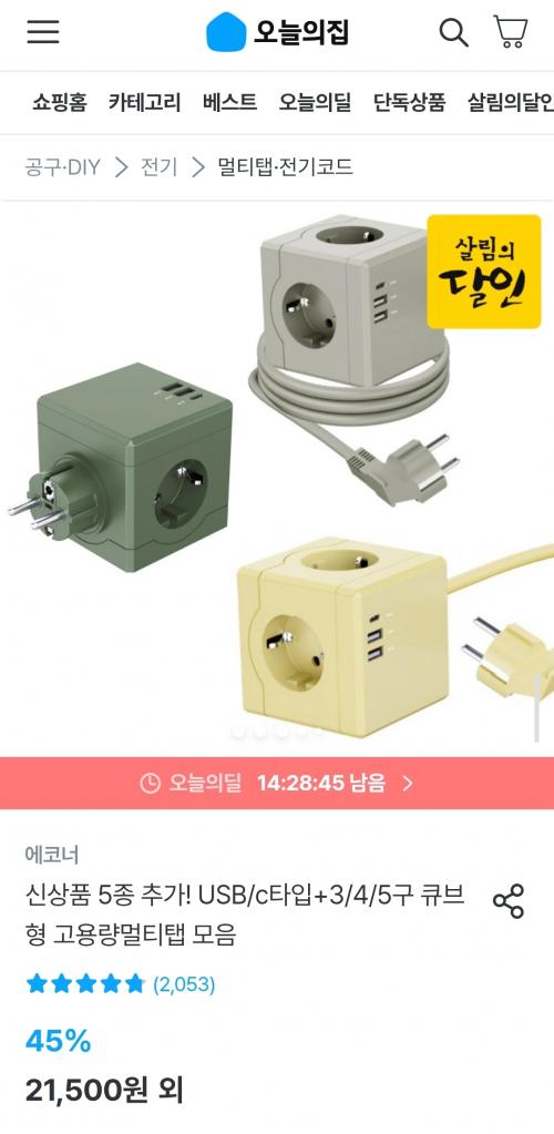 [오늘의집]납작 고용량멀티탭 usb/c타입 충전 무선형 45% 할인 (17,845원/무배) > 국내핫딜