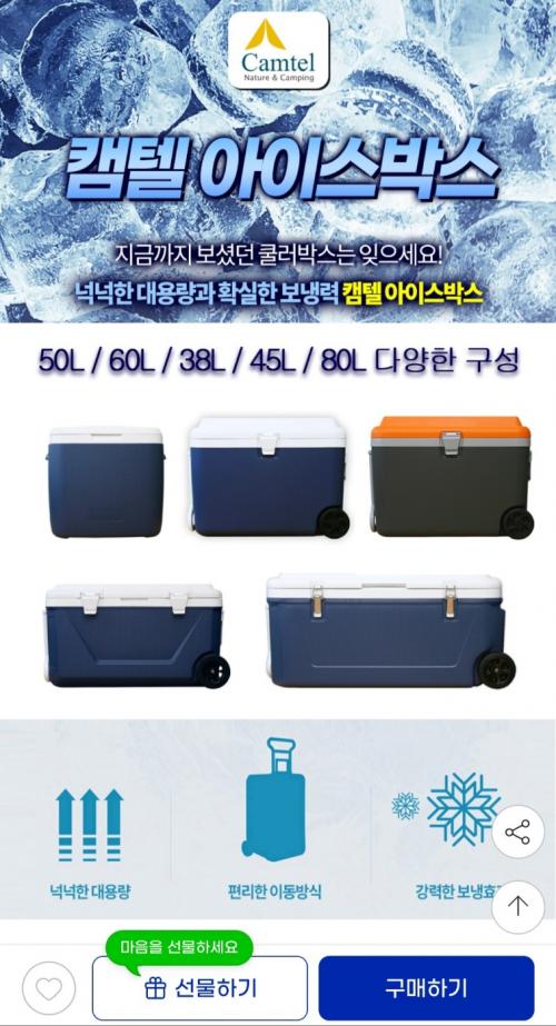 [지마켓] 바퀴형 아이스박스 38 45 50 60리터 대용량 (69,700원 / 무료배송)