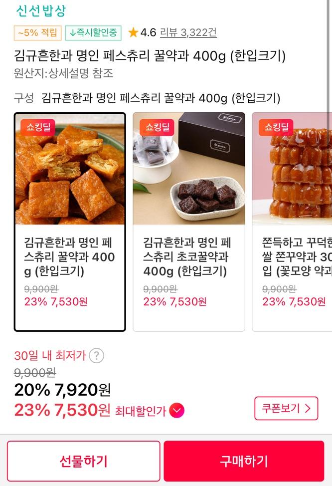 [11번가]김규흔한과 명인 페스츄리 꿀약과 400g (7,920원/무료) > 국내핫딜