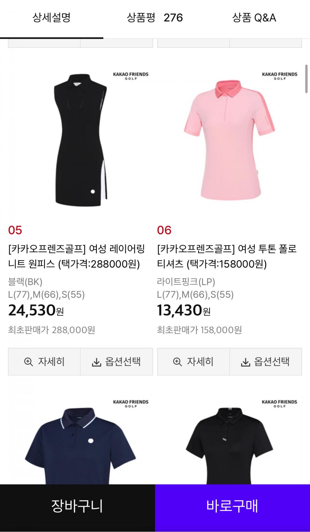 [패션플러스] 카카오프렌즈골프 봄/여름 티셔츠자켓 등 (13,430원/무료) > 국내핫딜