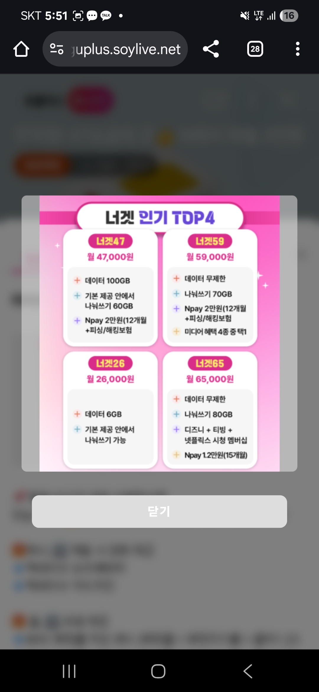 47요금제 네이버 포인트 월 2만씩 줘서 체감가 27,000원입니다.
