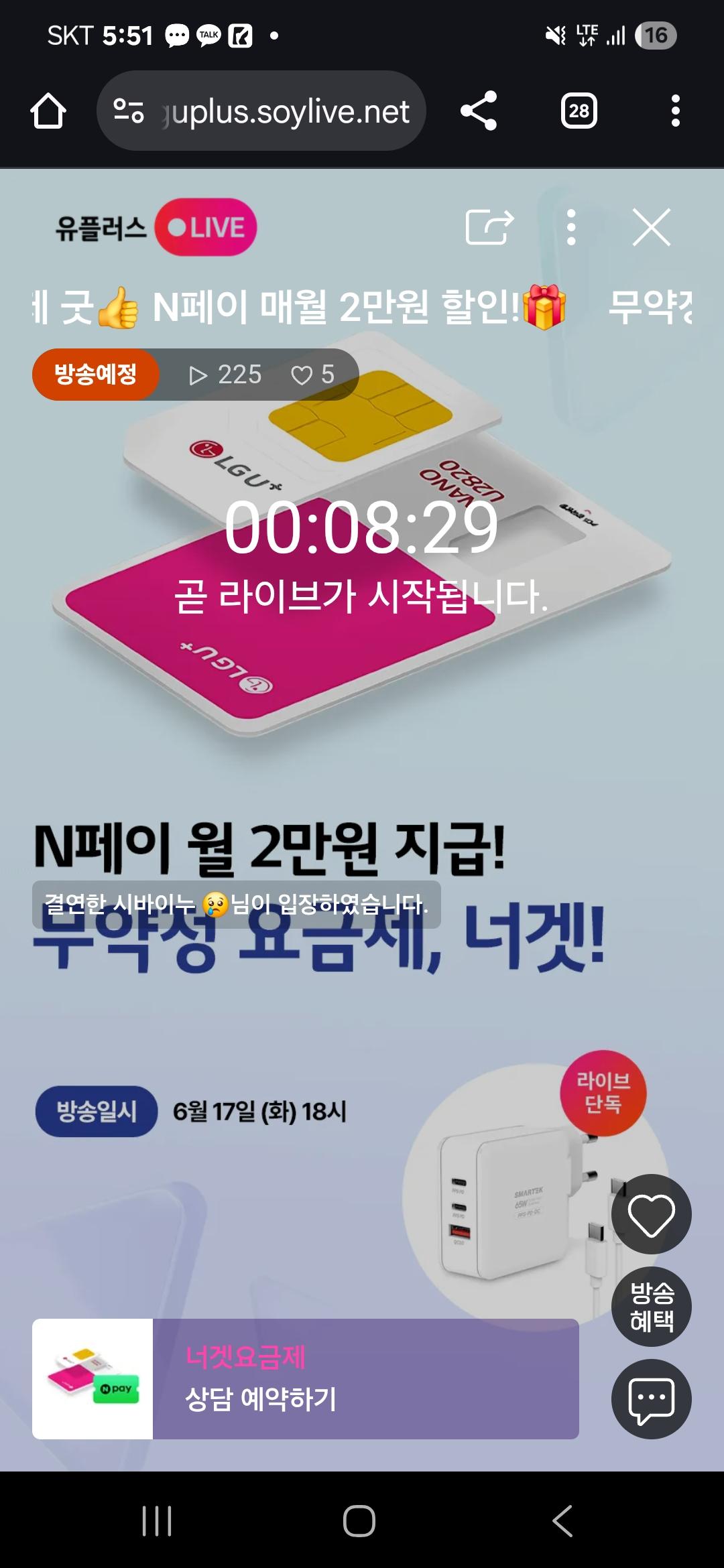[U+ 라이브] 너겟 47요금제 월 포인트 2만씩 지급 (47,000원/무료) > 국내핫딜
