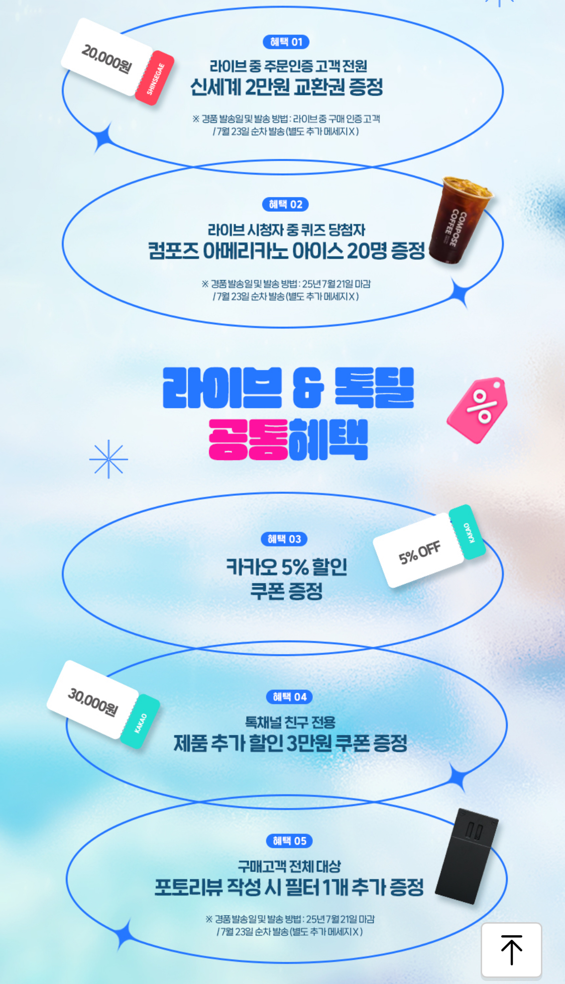 이벤트도 다양하게 구성되어 있어, 라이브 중 구매 인증 시 신세계 상품권 2만원 교환권이 전원 지급되고,