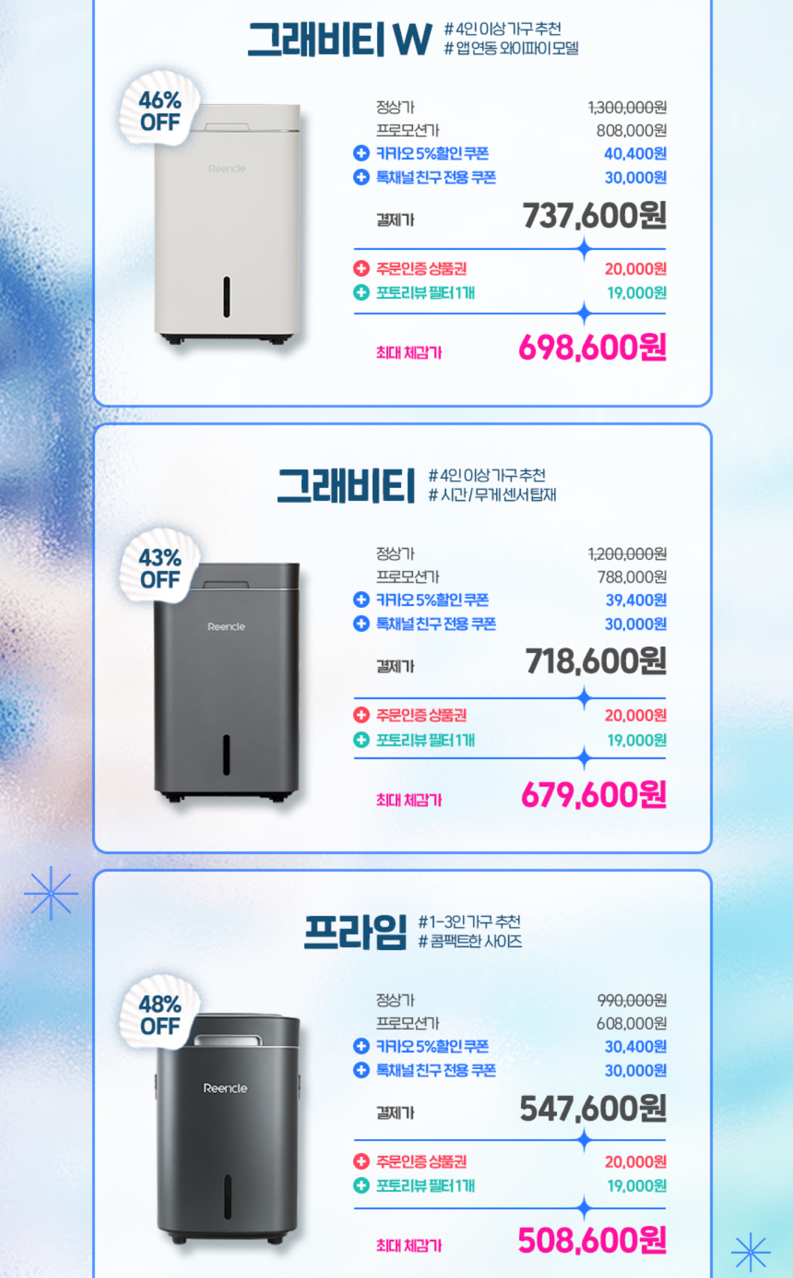 그래비티W, 그래비티, 프라임 모델이 모두 할인된 가격에 제공됩니다.