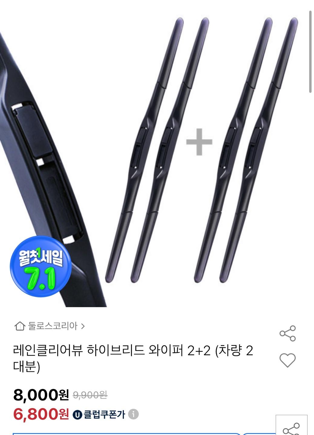 [옥션] 레인클리어뷰 하이브리드 와이퍼 2+2 차량2대분 (유클6,800원/무료) > 국내핫딜