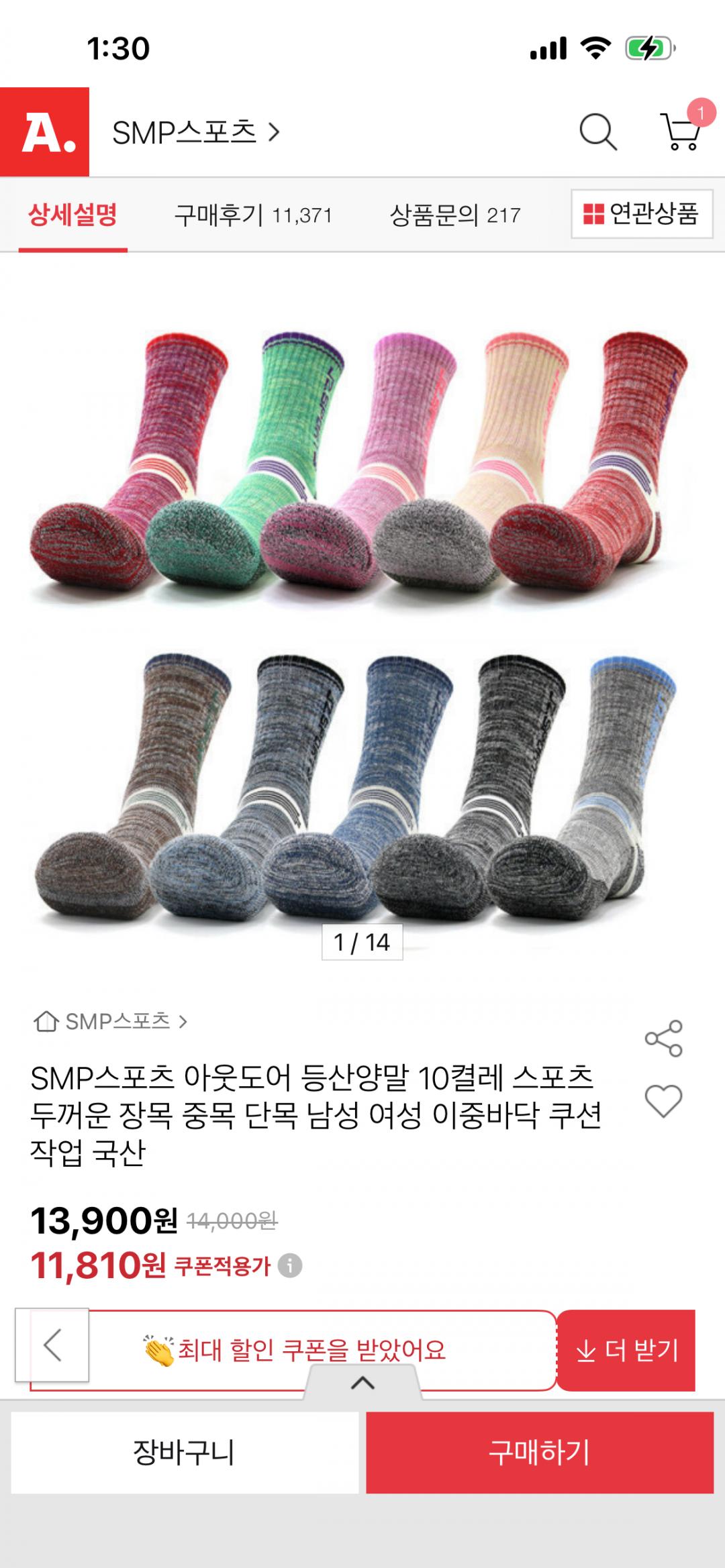 [옥션] 스포츠 아웃도어 등산양말 10켤레 세트 (11,810원/무료) > 국내핫딜