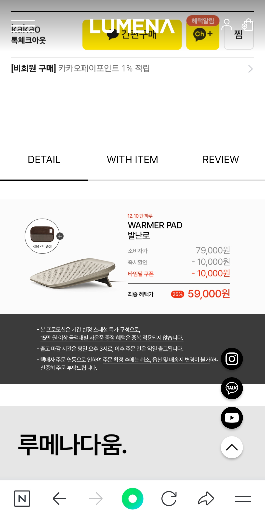 루메나 자사몰에서 오늘만 스폐셜 타임딜 행사로 최대 40%까지 할인하네요~