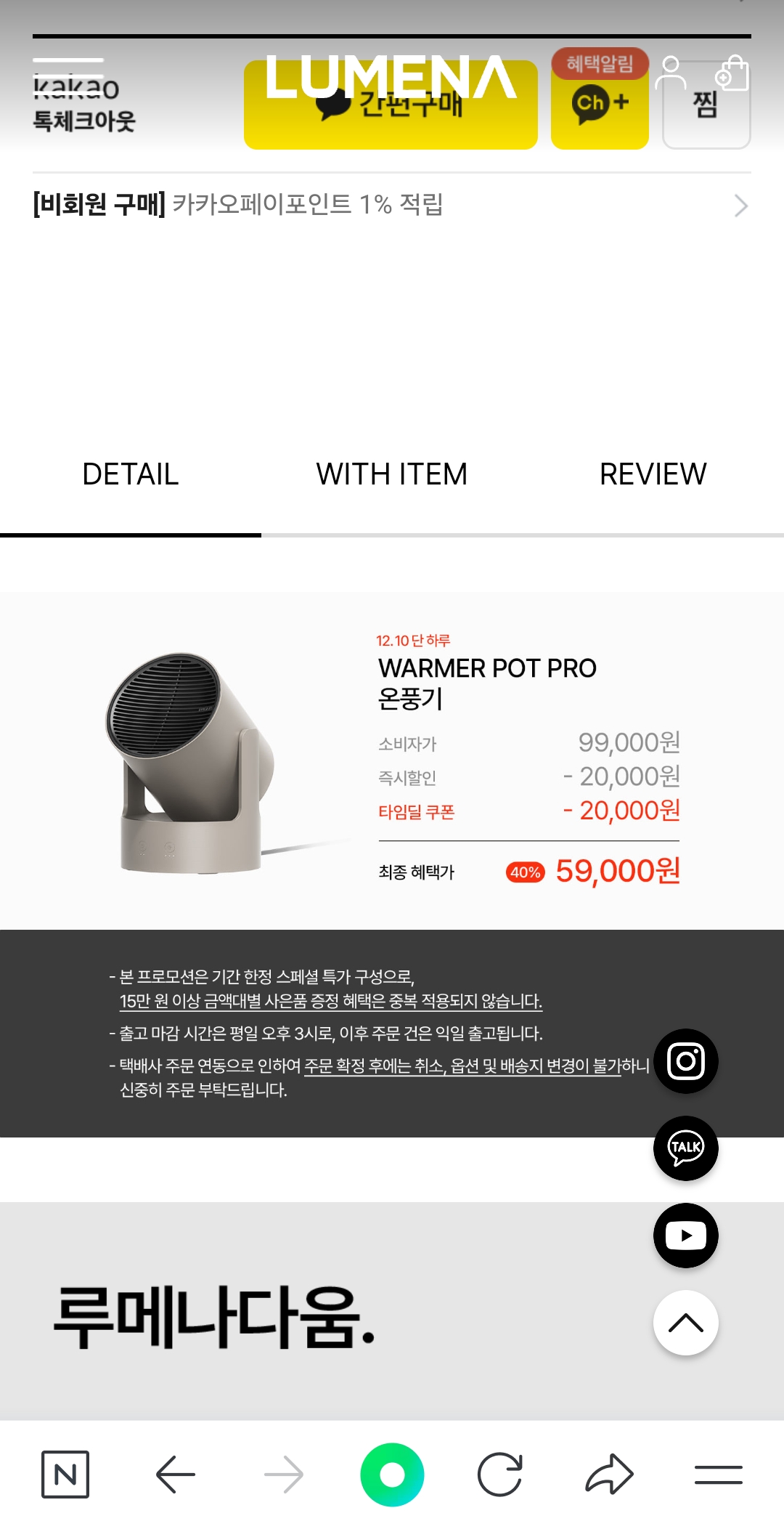 [자사몰] 루메나 온풍기 시리즈 스폐셜타임딜 최대 40% (59,000원/무료)