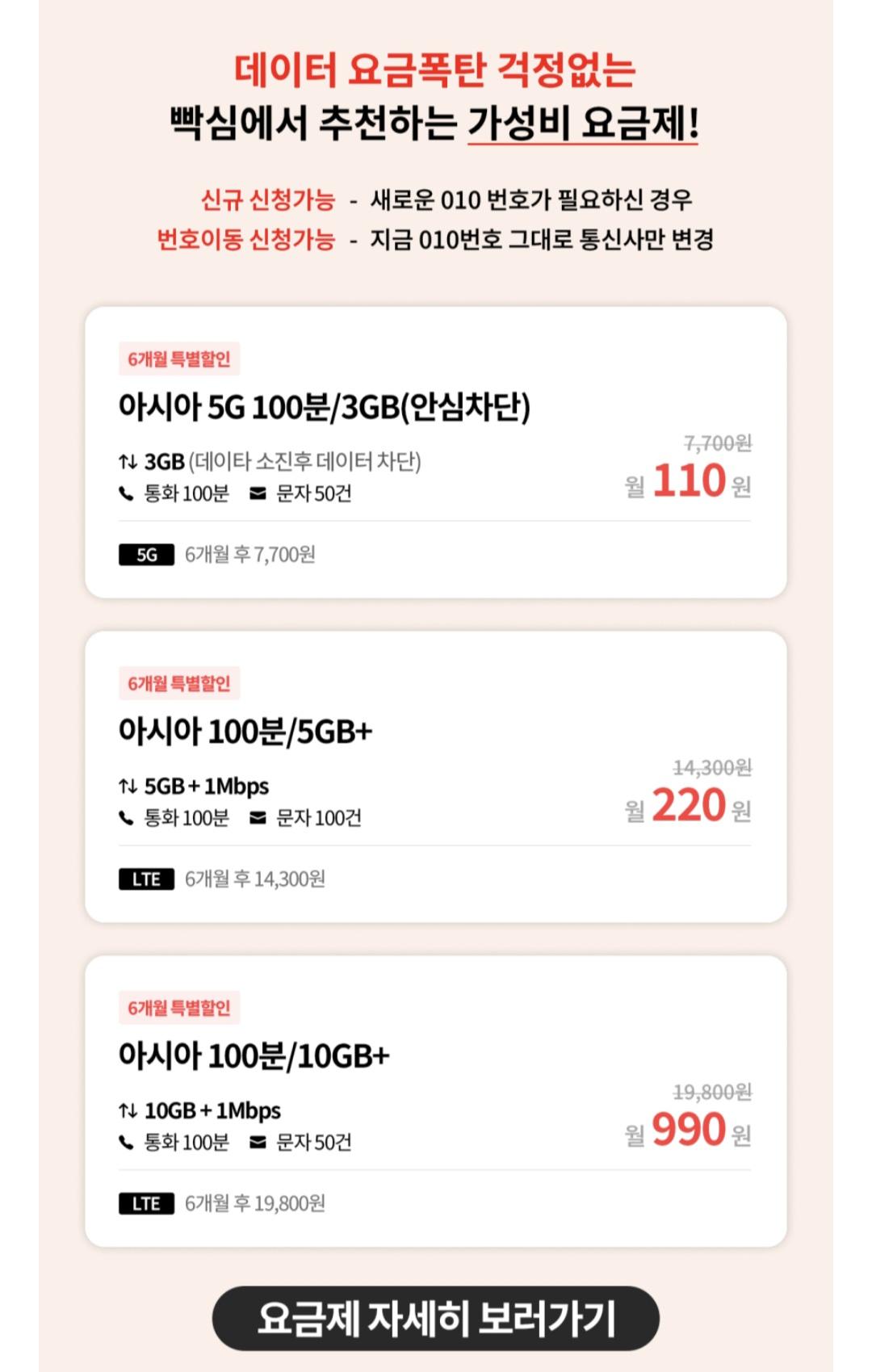 [빡심]U+알뜰 10GB + 100분 / 6개월간 (월990원)