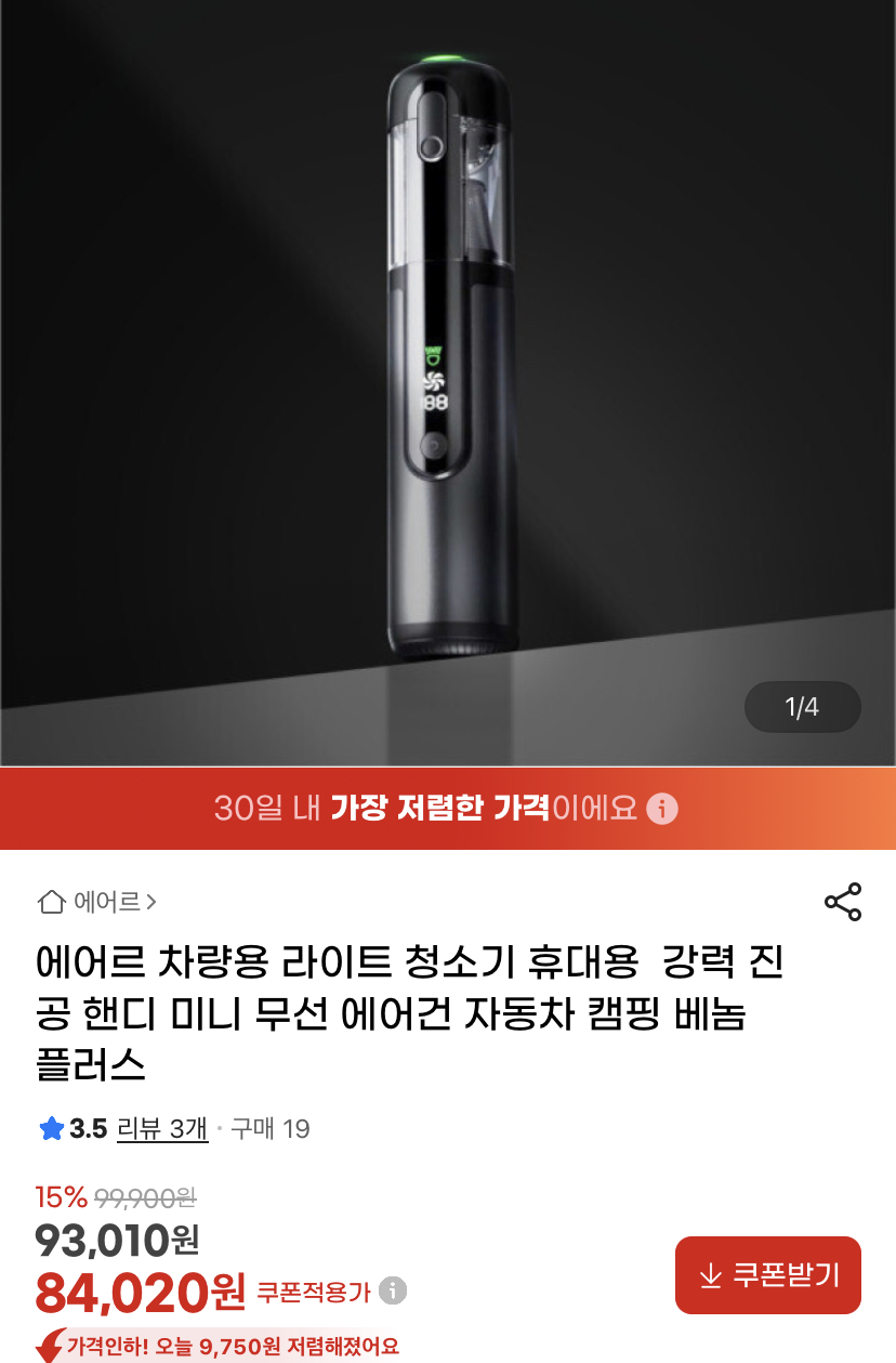 차량용 미니청소기치고 흡입력 좋은편입니다