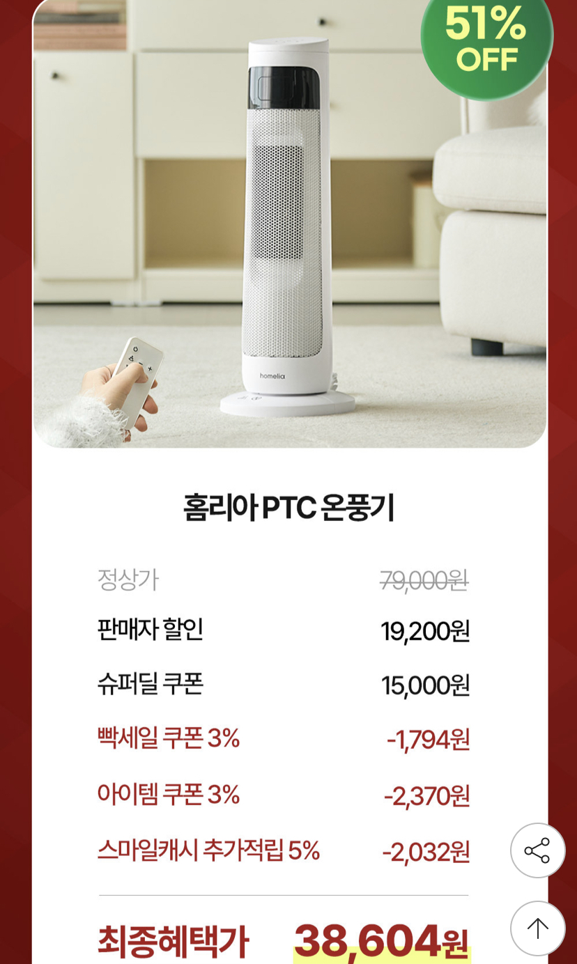 슈퍼딜&빡세일&아이템 중복쿠폰에 스마일캐시 적립하면 가격 나옵니다