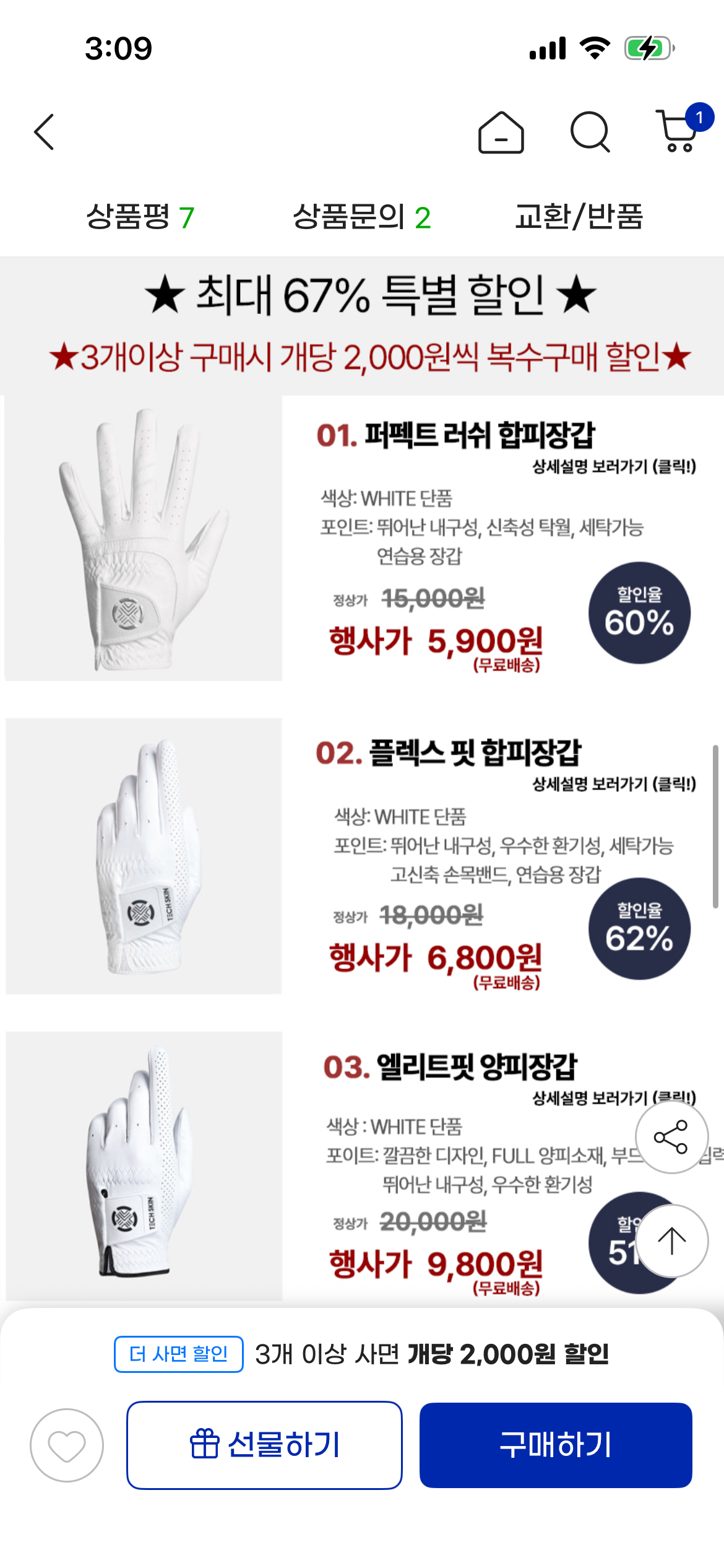 골프장갑 종류 다양하게 최저가 할인중입니다!