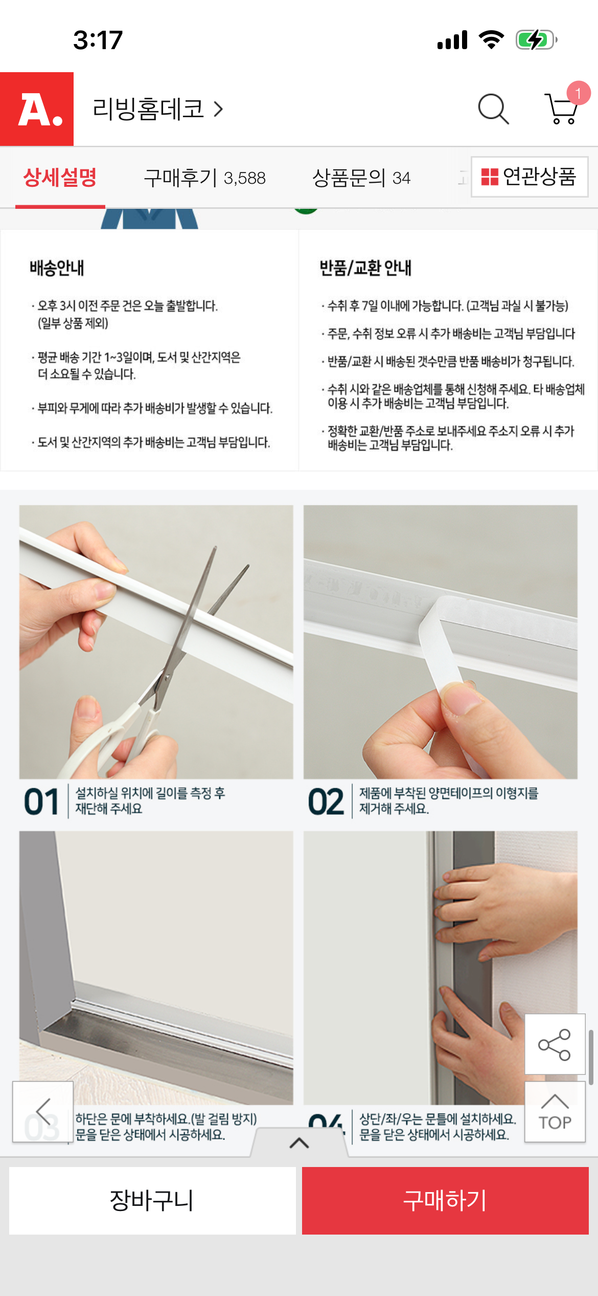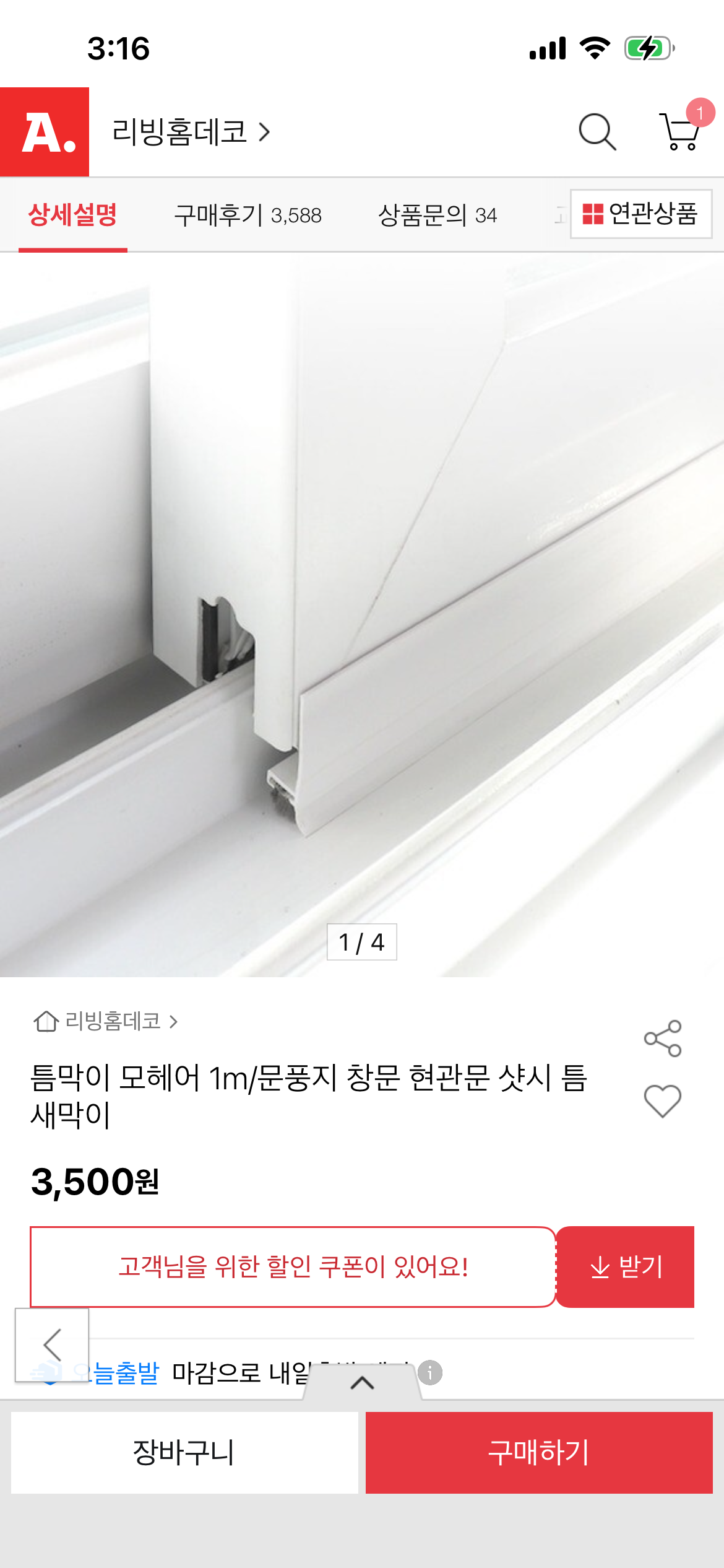 [옥션]컬러 다양 틈막이 모헤어 문풍지 1m (3,500원/3,000원)