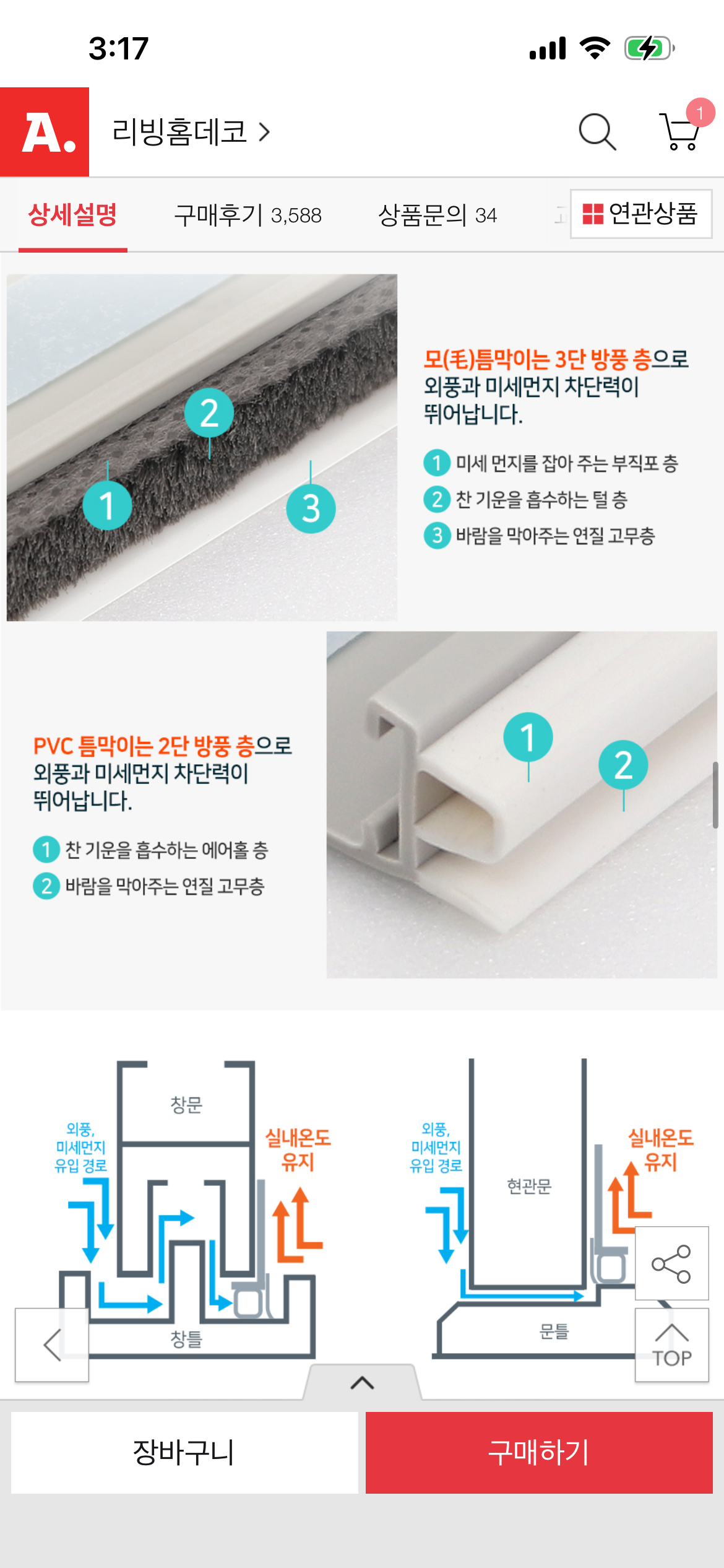 [옥션]컬러 다양 틈막이 모헤어 문풍지 1m (3,500원/3,000원) > 국내핫딜